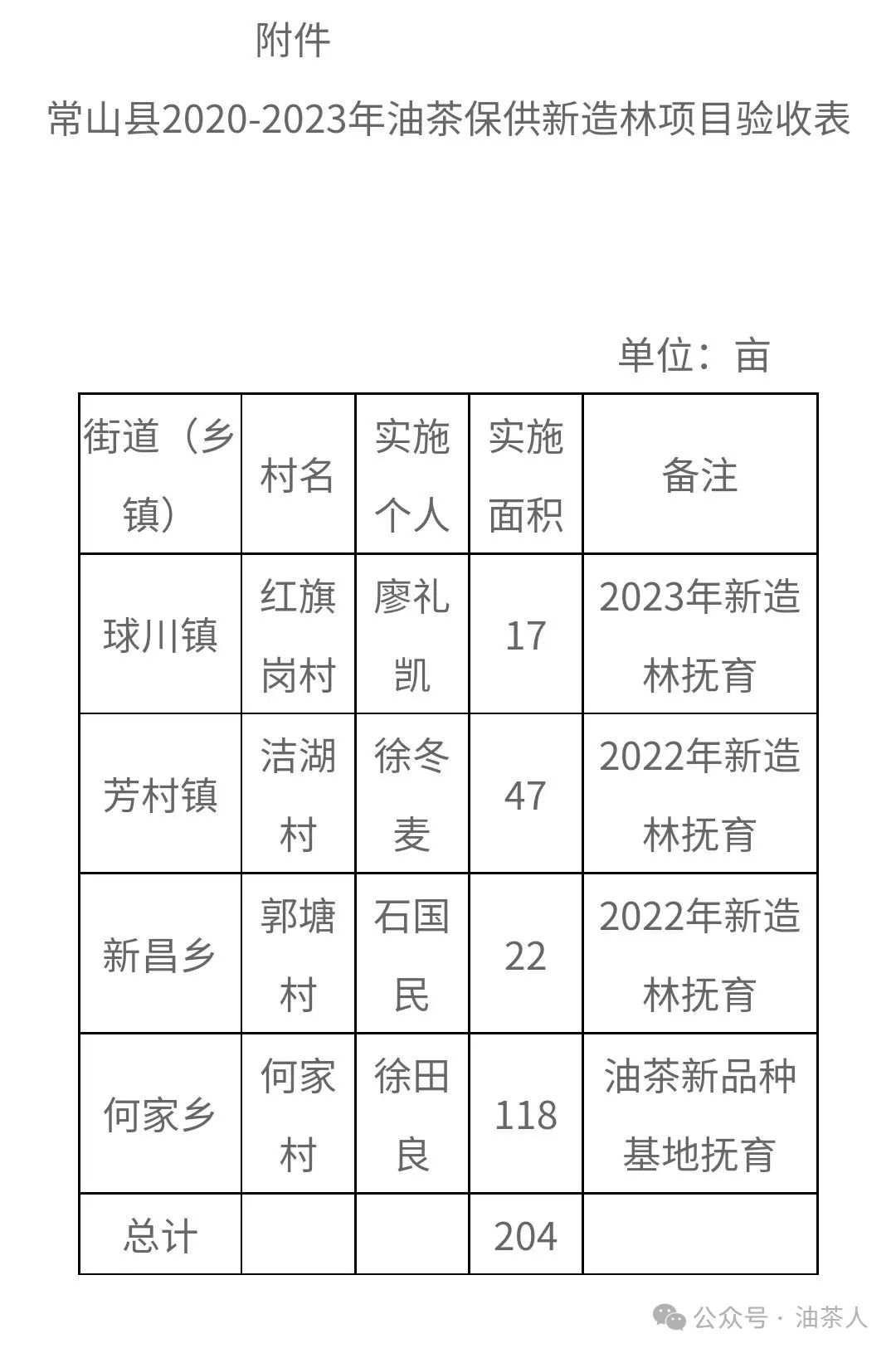 附件:常山县2020-2023年油茶保供新造林抚育项目验收表