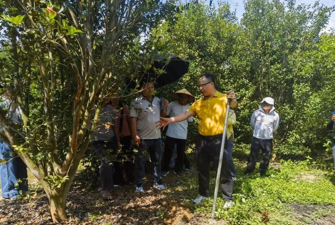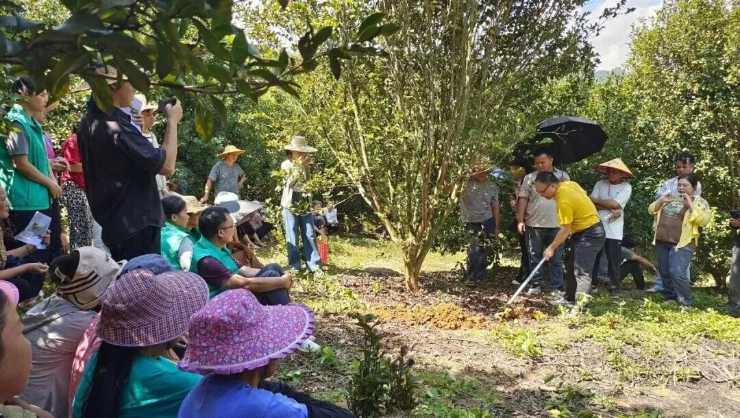 培训通过田间实地操作模式,确保培训内容的针对性和实用性。自治区林业科学研究院高级工程师梁国校针对忻城的地理气候特点,就油茶的生物学特性、高产良种选择、规划建园标准、水肥管理技巧、科学修剪方法以及低产林改造技术等方面的知识进行讲解,现场演示油茶树的科学整形修剪技术,就如何培养丰产树形、优化结果枝组、去除病虫枝和过密枝等关键环节进行精准指导。特别强调生态化、标准化栽培的重要性,引导农户转变传统粗放的管理观念,向精细化、科学化管理要效益。