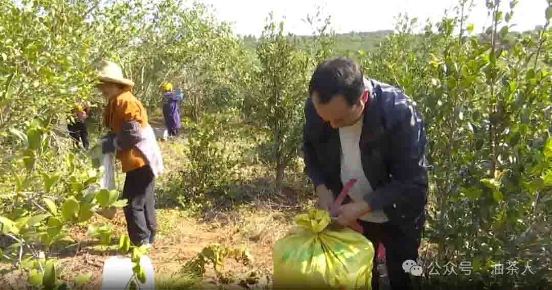 踏入石市镇土桥村高产油茶基地,连片油茶林顺着山林延展。枝头油茶果褪去青涩,油亮饱满,沉甸甸压弯枝条,丰收盛景尽现。村民们拎着编织袋、挎着背篓,在林间灵活穿梭,熟练采摘、装袋,一派繁忙。