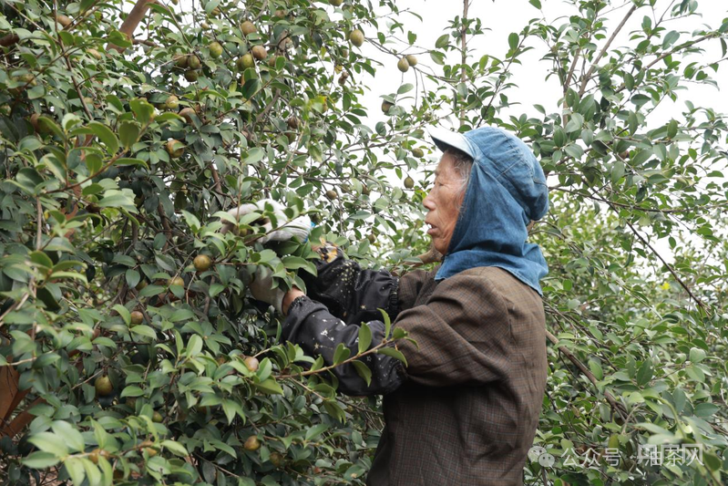 “我们一个人一天有一百多块钱,平常负责除草、施肥、修枝,现在采摘期了主要就是采摘,我们40多个人每天大概能采两万斤。”村民蒋庭庆一边摘着油茶果一边说道。