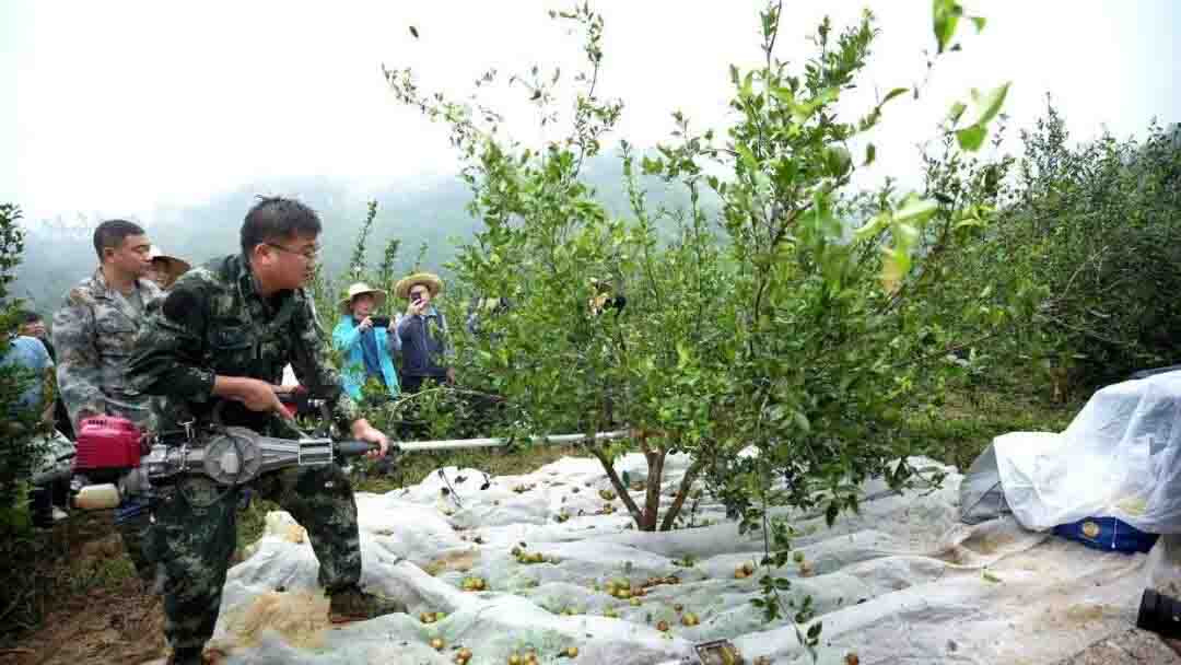 与会人员实地观摩了高峰林场平甫分场油茶高产示范林,现场观看机械设备与无人机在油茶采收中的高效应用,进行油茶采收与测产技术、油茶修剪与施肥关键技术现场培训和实操,高峰林场就油茶高产管护作经验分享。经现场采收测产显示,平甫分场油茶示范林平均亩产鲜果达2119斤,单株最高产量90斤,展现出良好的丰产潜力。