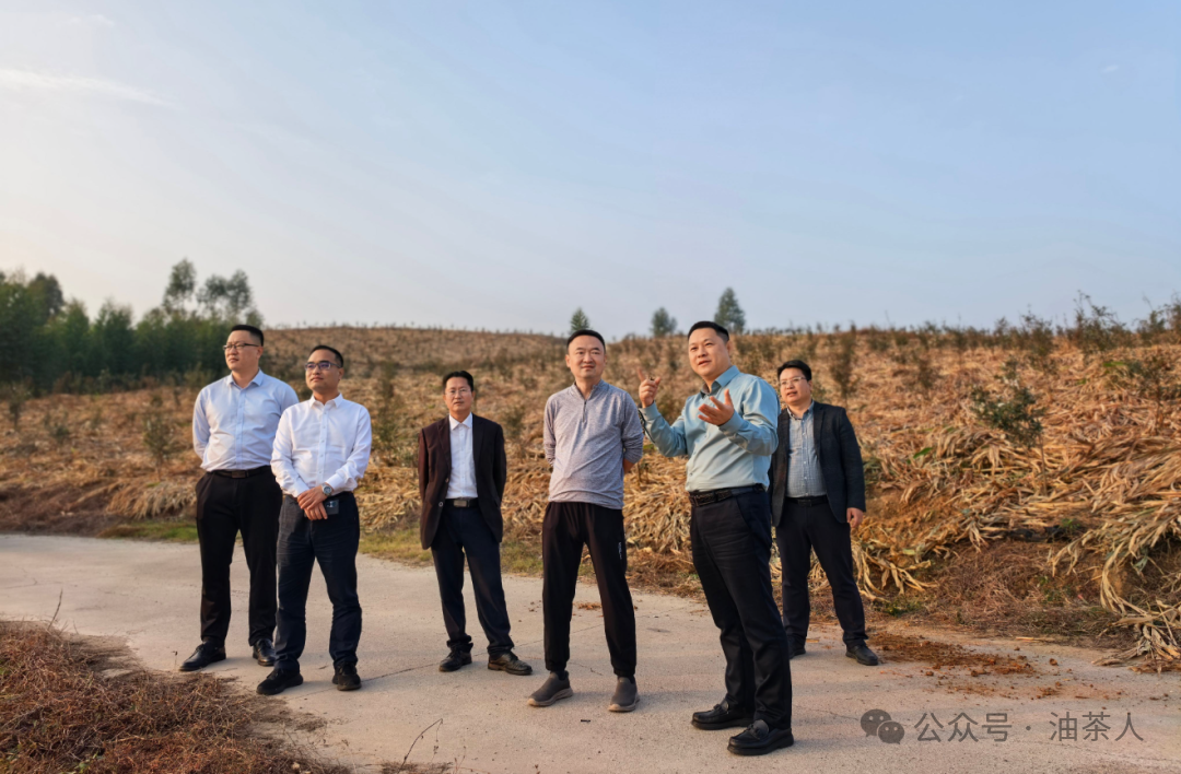 2025年12月10日,北部湾大学党委书记、校长苗剑与广西国有东门林场党委书记、场长叶家义联合率队到三门江林场考察油茶产业,三门江林场副场长肖崇福陪同考察