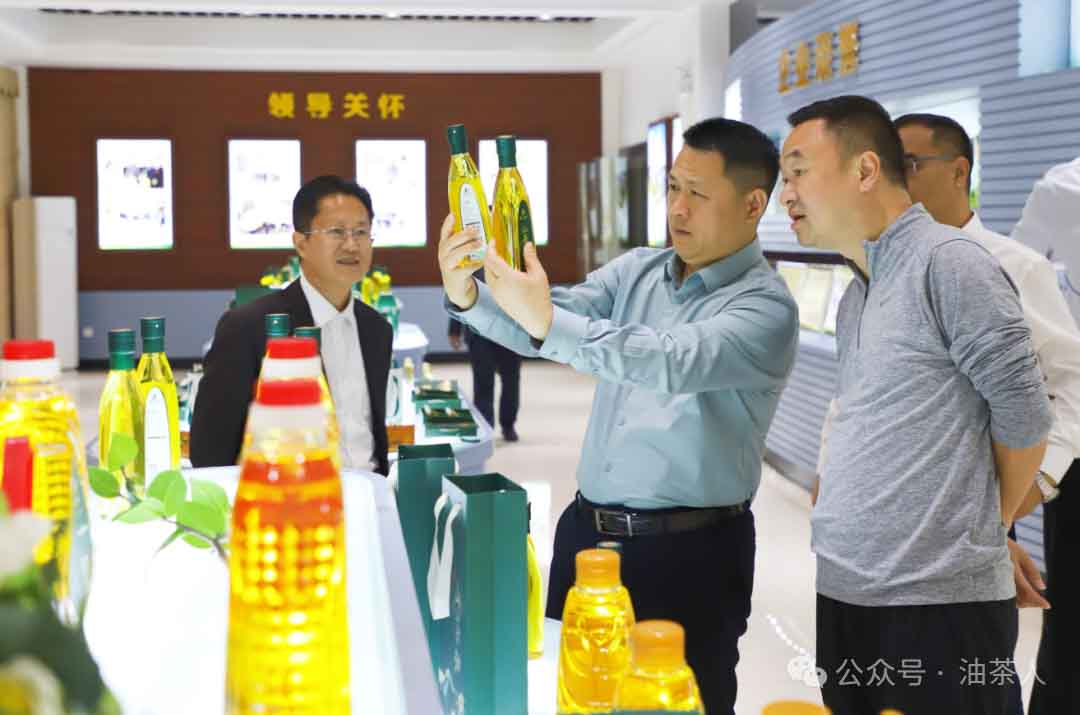 考察组深入桂之坊精深加工生产车间及产品展示厅,实地查看山茶油从原料甄选、低温物理压榨到适度精制的全流程现代化生产工艺,重点询问了产品销售渠道布局及茶粕、茶壳等副产品综合利用的技术路径,围绕企业生产运营、产品创新、市场拓展等方面与公司有关人员深入交流。考察组品鉴了桂之坊“可以喝的”山茶油,体验了“茶养芙”山茶油润肤油等高附加值衍生产品后,对公司融合传统工艺与现代技术的创新实践及延伸产业链、提升产品品质优势给予肯定。
