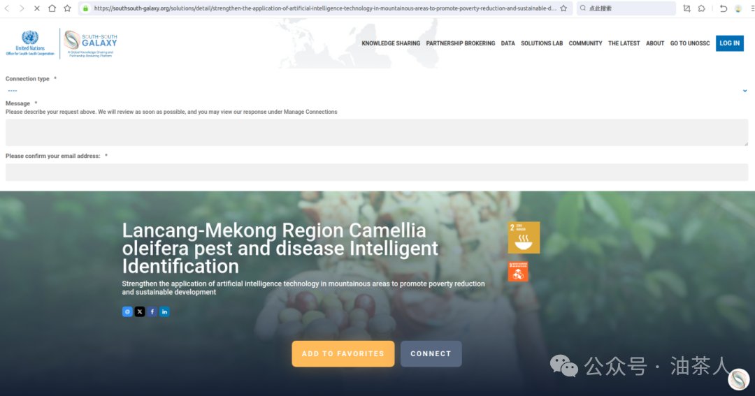 近日,广西林业实验室牵头单位广西林科院申报的人工智能项目“澜沧江—湄公河地区油茶有害生物识别”通过联合国南南合作办公室(UNOSSC)评审,成功入选“南南合作与三方合作助力可持续发展优秀实践案例”,并在South-South Galaxy平台向全球展示。