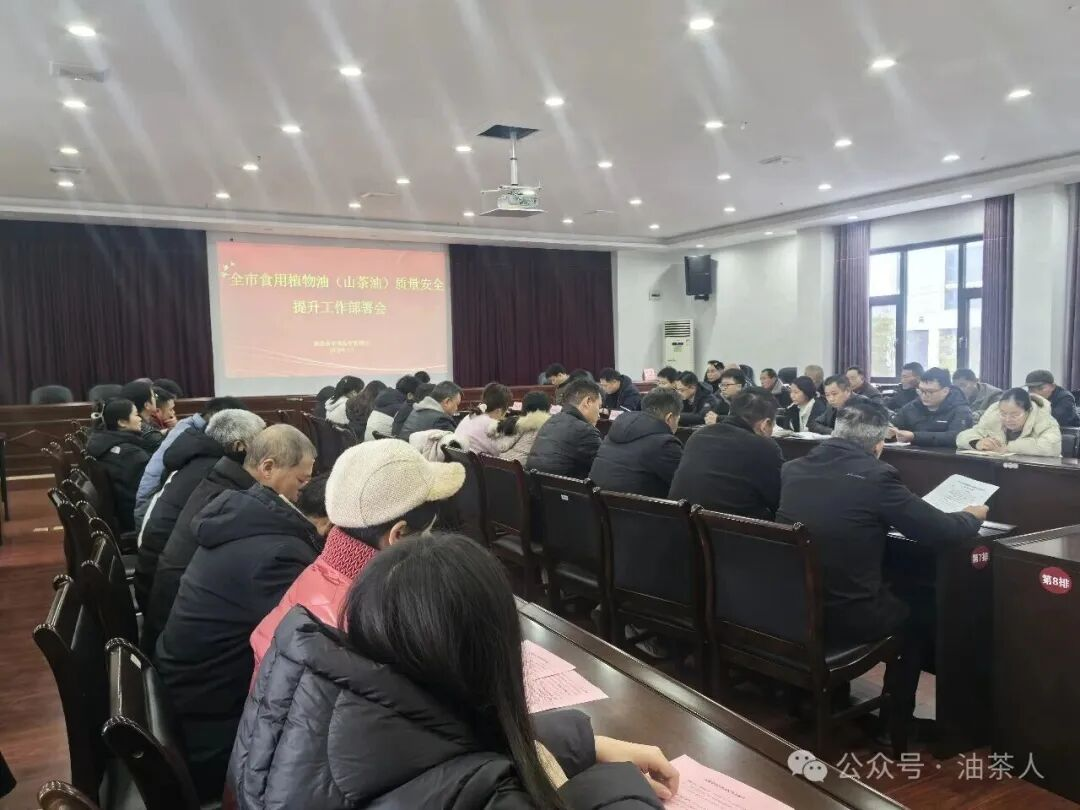 为全面提升新余市山茶油质量安全水平,规范行业生产经营秩序,推动产业健康可持续发展,近日,新余市市场监管局组织召开了全市山茶油质量安全提升工作部署会。市、县(区)局有关监管人员,市山茶油协会负责人,以及全市山茶油生产加工企业、小作坊负责人共计60余人参加。