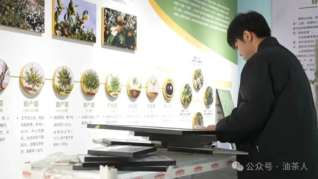二楼博物馆区的施工同样如火如荼。展厅内,工人们正精心布置油茶历史文献、农具实物及艺术作品。这里将通过图文展板、多媒体互动等形式,系统梳理青田油茶从种植到加工的千年传承,并重点展示“浙南油库”的辉煌历史。
