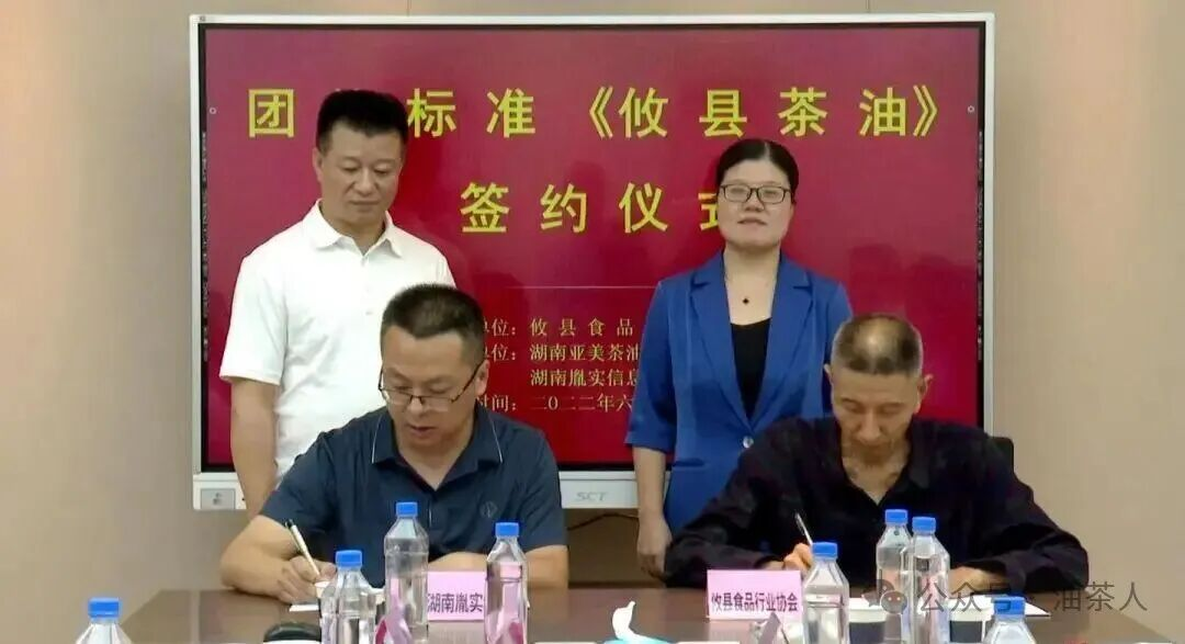 6月29日,县高新区亚美茶油公司会议室里,攸县食品行业协会与湖南胤实信息咨询有限公司签订技术服务协议,“攸县茶油”团体标准正式立项。简洁的签约仪式,却让在场油茶企业代表掌声不断——标准落地,意味着品牌溢价、市场话语权将握在自己手里。