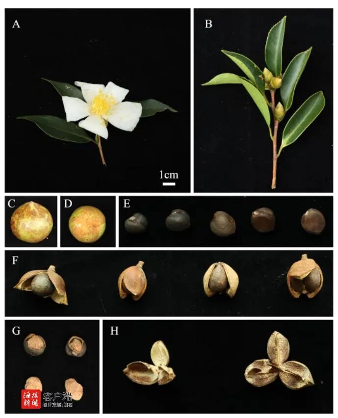 日前,海南大学油茶团队在科研上发现又有一个新物种,即在形态上,五指山油茶为高达12~18米的乔木,海南油茶几百年的老树通常树高在4~5米左右,树形上有显著差异。果实形态上五指山油茶果实偏小,果实横径1.8~50px,每个果实内部一般1~2粒种子,海南油茶属于大果油茶,果实横径4~200px,每个果实内部一般有几粒到十几粒种子不等。