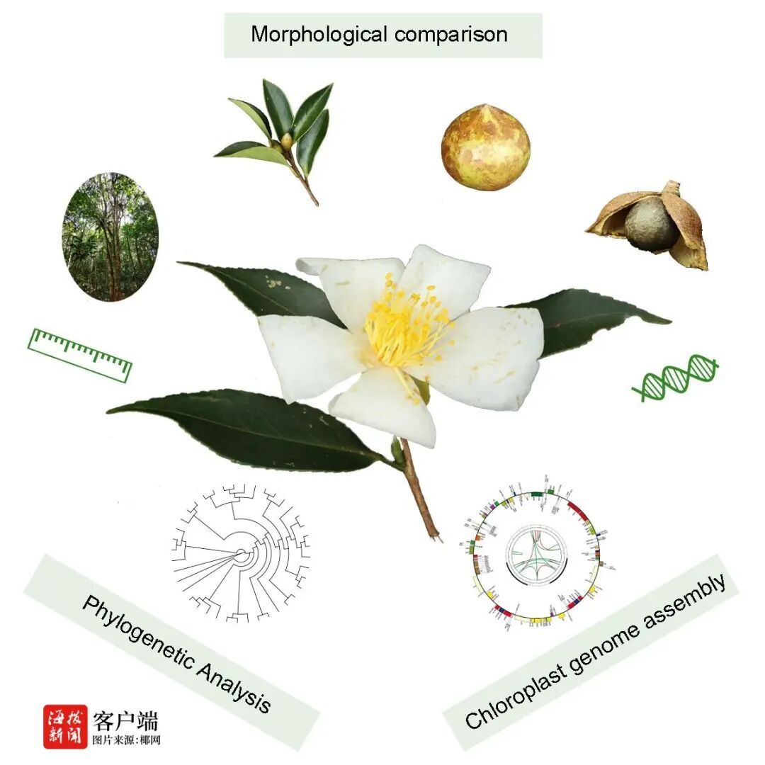 海南大学油茶团队答:我们团队在进行油茶种质资源收集的过程中发现五指山油茶在表型上与海南油茶和越南油茶有很大的差异。然后我们就对它的树形及花、果、叶等不同组织与其他相似物种做了详细的对比,基本从形态学上可以判断为一个新物种。为了更准确地判断,我们进行了系统的分子生物学并分析组装了包括海南油茶、越南油茶和五指山油茶等300多份油茶群体的叶绿体基因组,利用叶绿体基因组构建系统发育树,在进化树上五指山油茶形成一个独立的分支,所以我们从进化上也确定五指山油茶为一个油茶新物种。