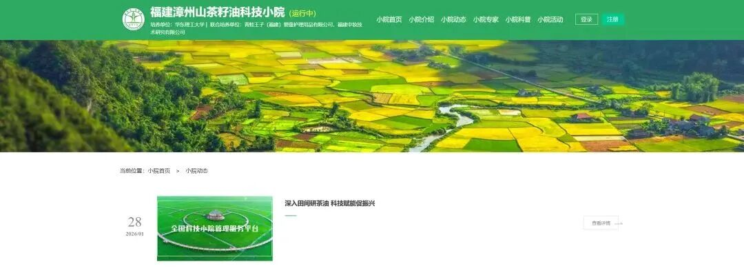 2026年1月28日,由青蛙王子集团联合华东理工大学、福建中妆技术研究有限公司共同建设的“福建漳州山茶籽油科技小院”,在全国科技小院服务管理平台正式开通上线。该科技小院不仅是福建首个、也是全国首个正式开通上线的山茶籽油科技小院。这标志着青蛙王子集团在山茶籽油产业产学研深度融合与科技赋能乡村振兴领域迈出了关键一步。