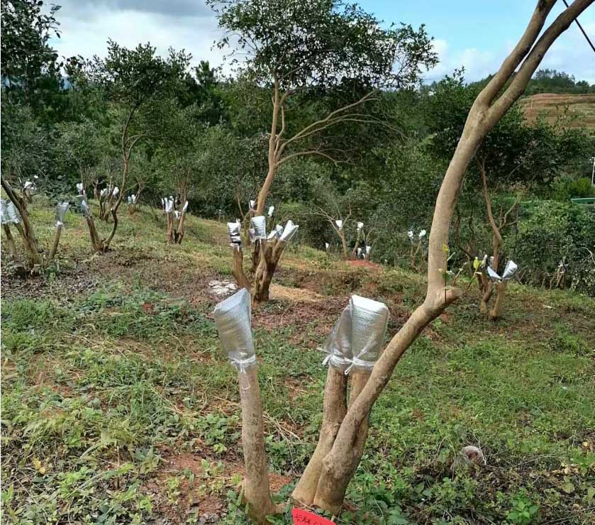 根据《加快油茶产业发展三年行动方案(2023—2025年)》的规划,全国油茶低产林改造要达到1275.9万亩。而对于管护到位,树势尚好但产量一直无法提高的油茶树来说,高接换冠是提高产量的有效手段。高接换冠技术是通过嫁接优质良种穗条——选择产量高、油质好、抗病虫害能力强、抗逆性好的品种,经过“换头”,从根本上改变原有林地因品种杂乱、品质参差不齐等因素导致的产量低效益差现象,同时也能解决因树体高大带来的采摘困难、采摘成本高等难题。更重要的是,嫁接后的枝条能借助原有树体强大的根系快速汲取养分,大大缩短油茶生长周期,从而实现提前结果、增加挂果率、提前收益的目标,让油茶种植户获得收益。